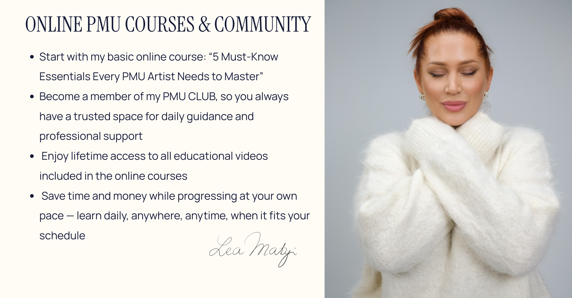 Get access to top secret expert tools, exclusive courses & guidance from me. We will stay in touch thanks to my PMU CLUB so you can ask me whatever you need when you are in any trouble.